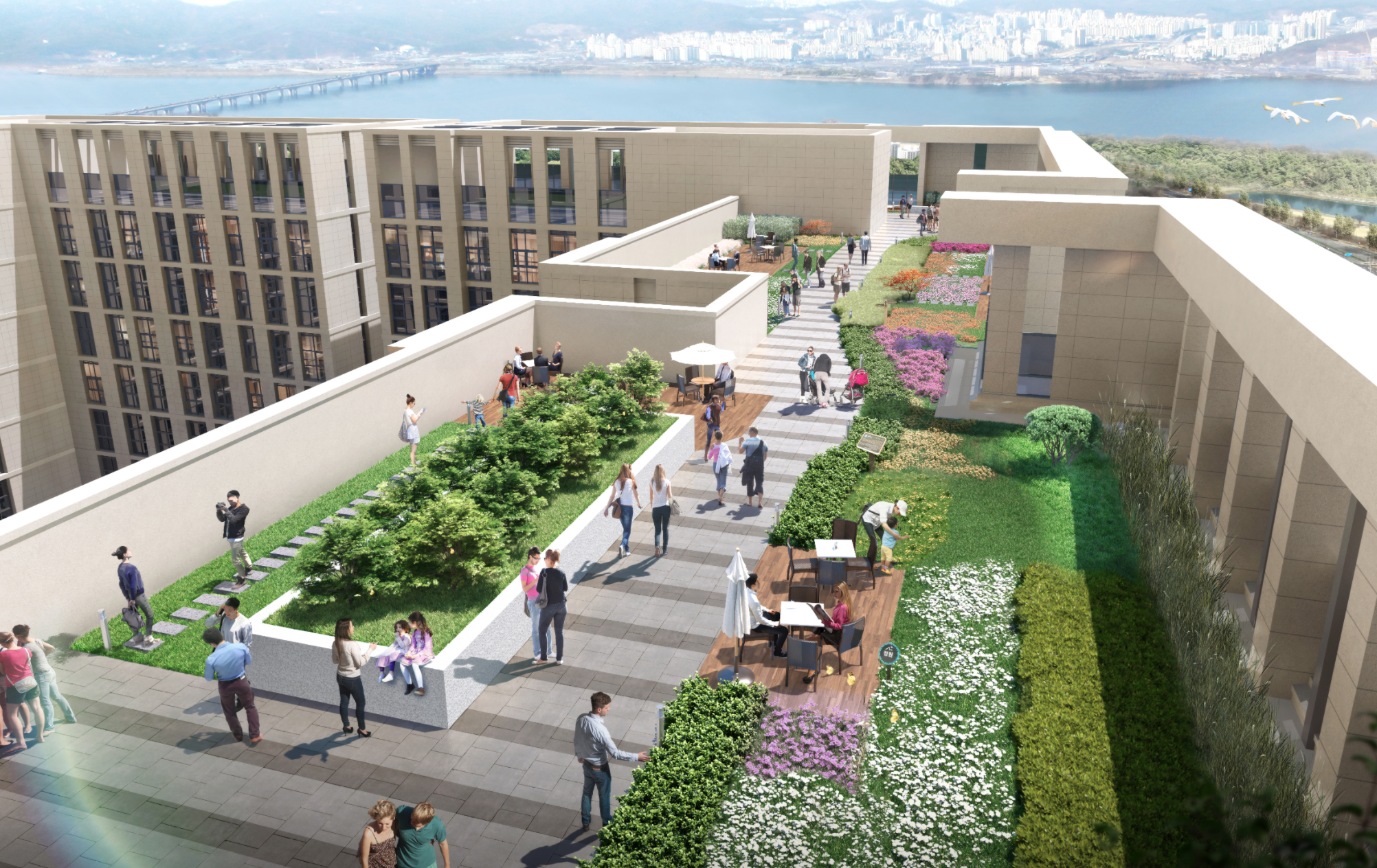 조감도는 하늘에서 새가 내려다본 것처럼 설계 대상지의 완성 후 모습을 공중에서 비스듬히 내려다보았을 때의 모양을 그린 그림으로, 공간 전체를 사실적으로 표현함으로써 공간 구성을 쉽게 알 수 있도록 표현한 것입니다.